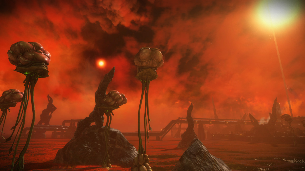 The eclipse sky featured in this level was originally developed for Basin, but we felt that introducing our new level in a dark and brownish lighting scheme wouldn't do us any favors, especially against darker levels like Conduit and Orbital. We swapped the two skies a couple weeks before submitting our Public Beta build, and the change ended up being permanent.