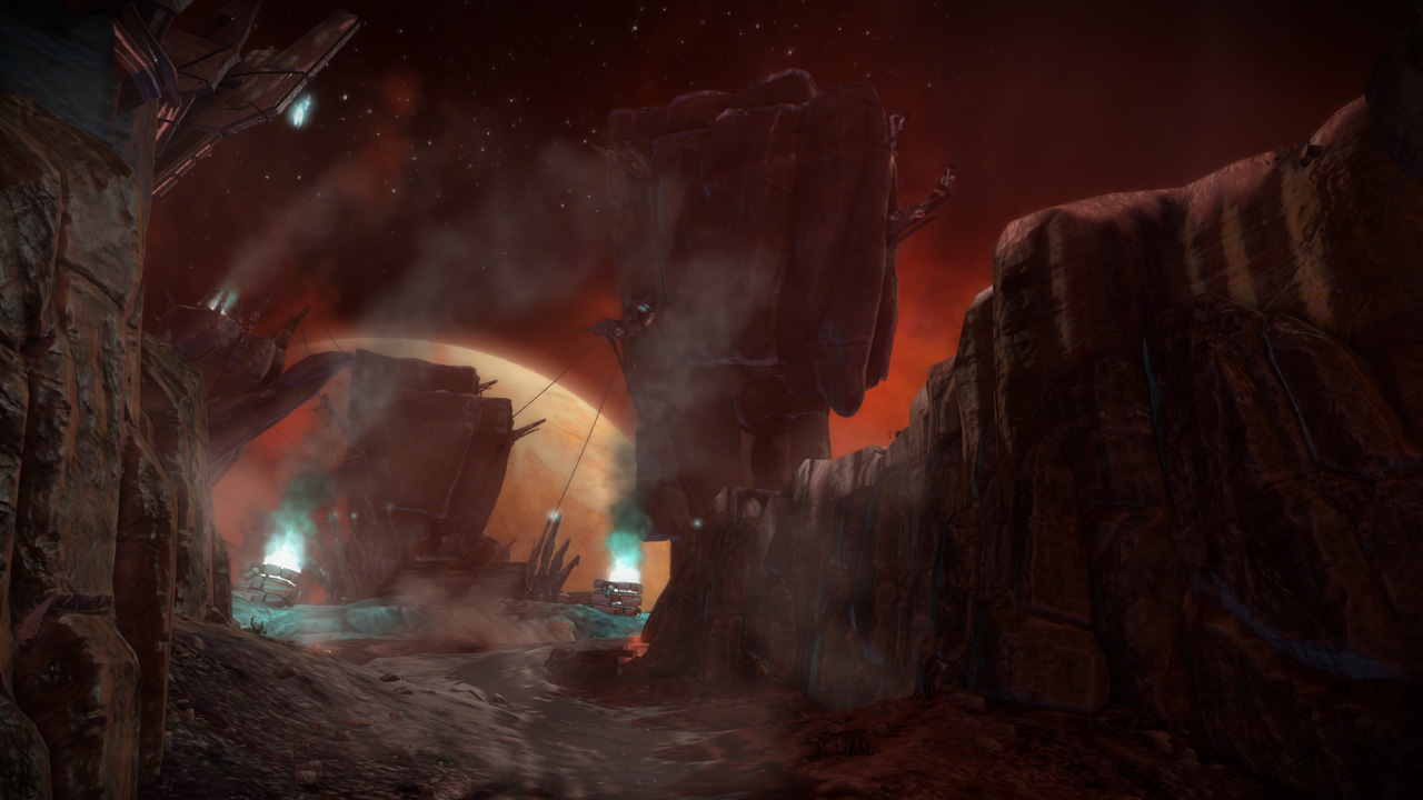 The Sever, or "shattered moon" environment, was the most challenging Starhawk environment to bring to life. In Starhawk's lore, this moon of Dust was torn apart by rift energy, and serves as the lair of the Outlaw and Outcast war bands in the campaign.