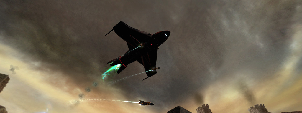 Another late-game addition was the Strogg Dropship. Unlike the Strogg Flyer before it, the dropship did come with a properly scaled mesh as well as landing and take off animations, but we needed a general-purpose delivery system.