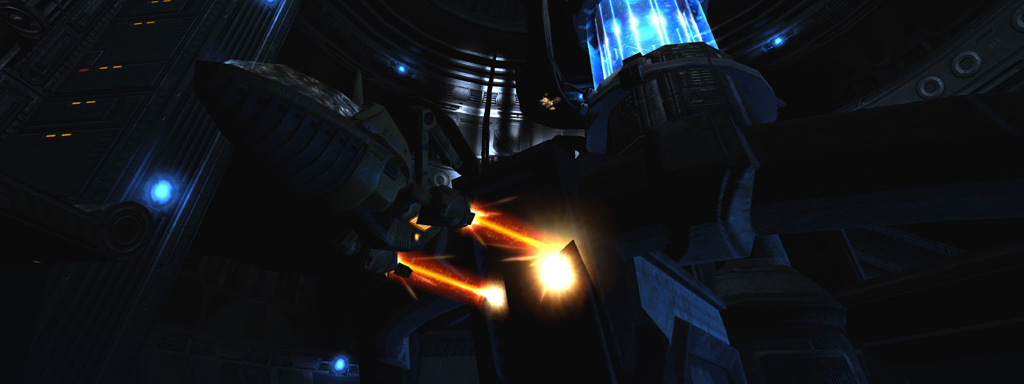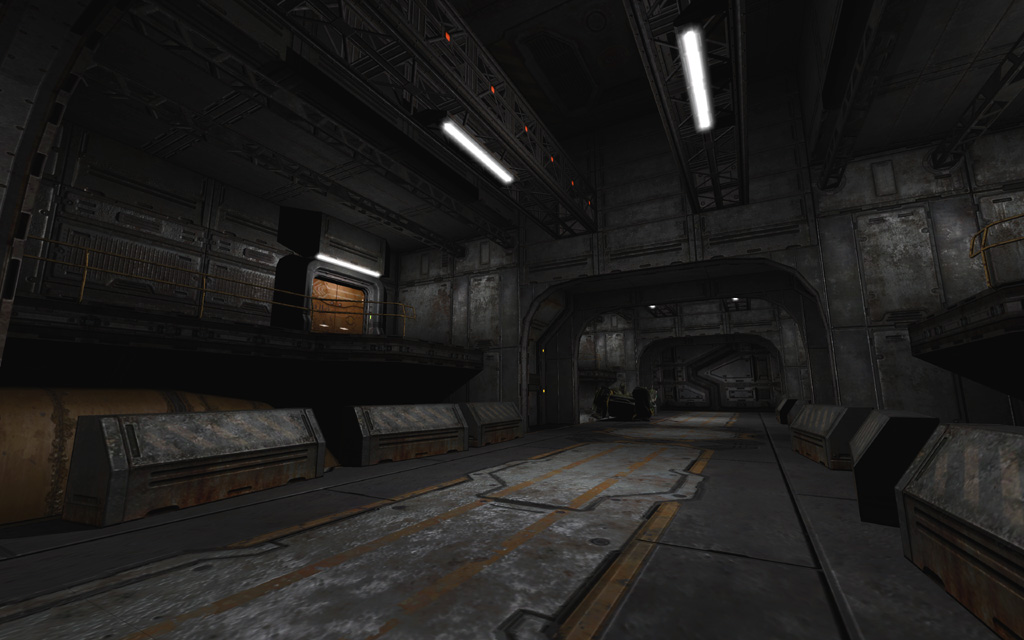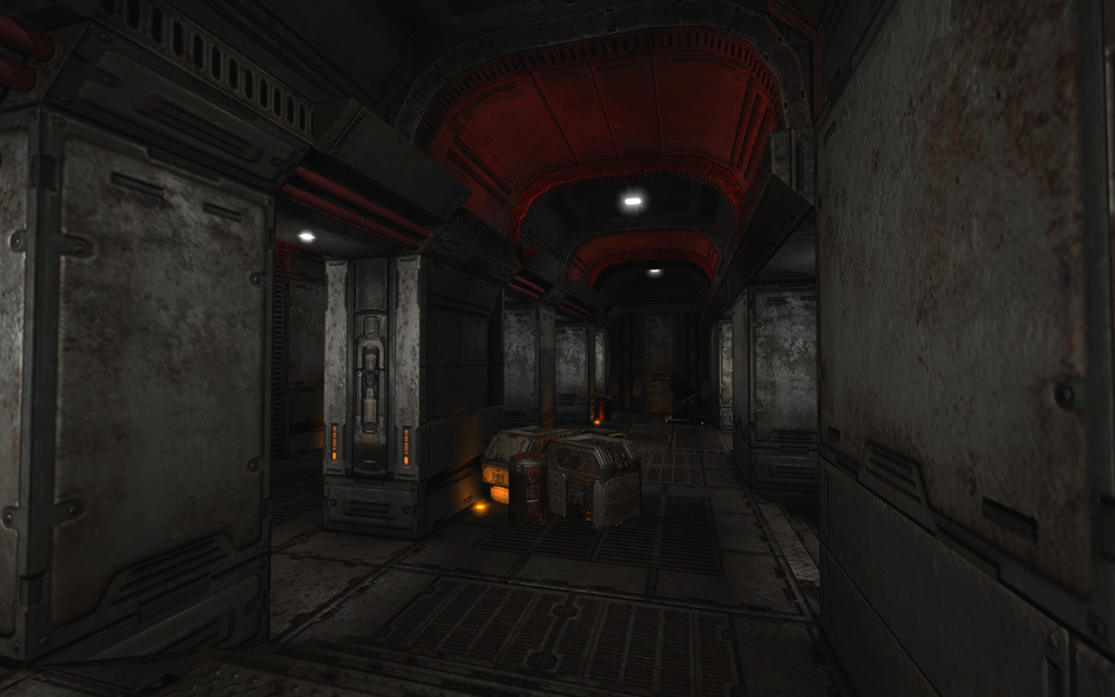 Fellow designer Corey Peters had just completed his own lighting pass on the main Data Storage level. My first instinct was to emulate his settings for consistency, but lead designer Jim Hughes encouraged me to pursue a new lighting style that would be unique to this level.