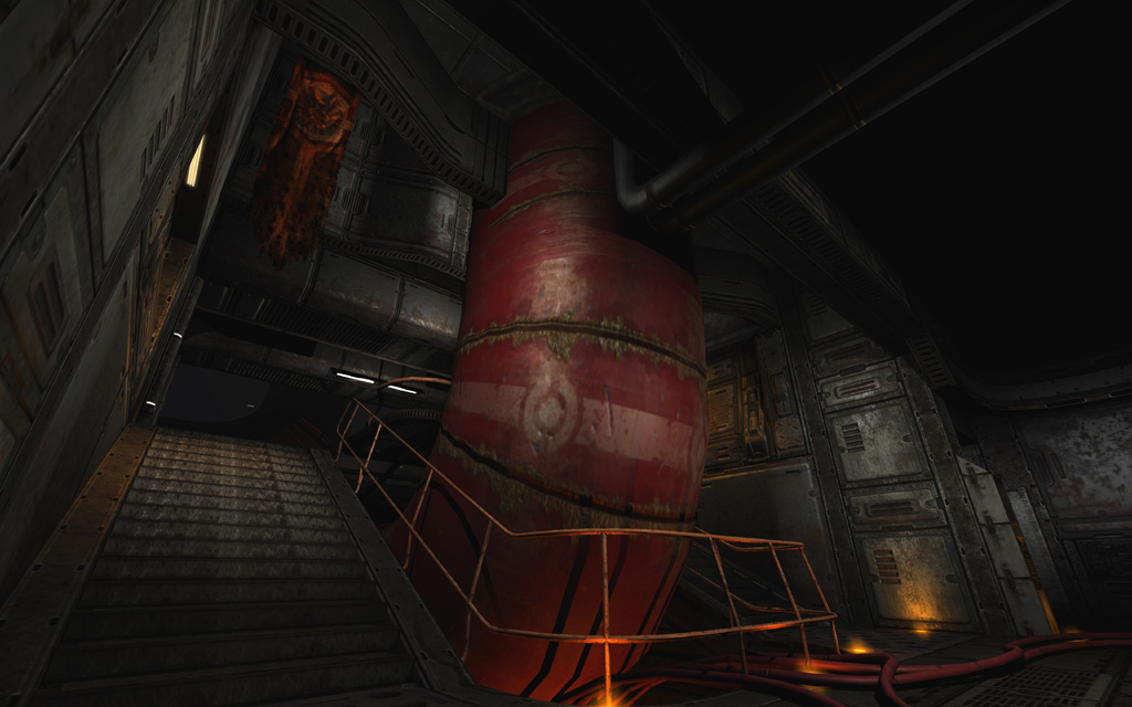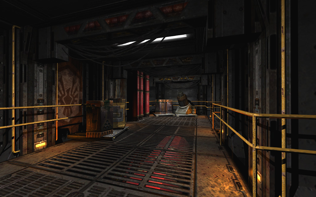 While this level stayed more intact than its elevated successor, the engine room at the center of this map was the subject of significant re-builds and re-designs before finally being left at a simple two-button "puzzle." The frequent revisions left the room a bit haphazard compared to its surroundings.
