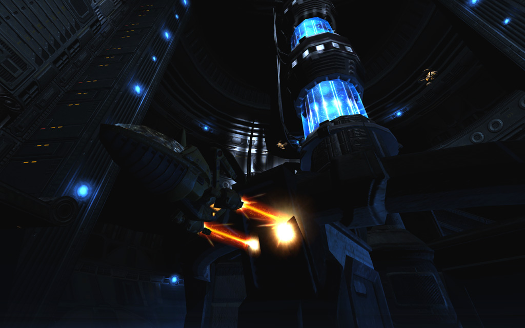 The original version of this level was considerably larger, with an additional floor above the current playable space. This area and its story objective were both trimmed out, leaving the level's primary objective at the destruction of the two hangar bays. Fortunately this was a fairly clean cut, and I was also able to easily re-purpose the elevator into the level's exit, which then connected back to the center of Hangar Perimeter's entrance room at the start of MCC Landing Site.