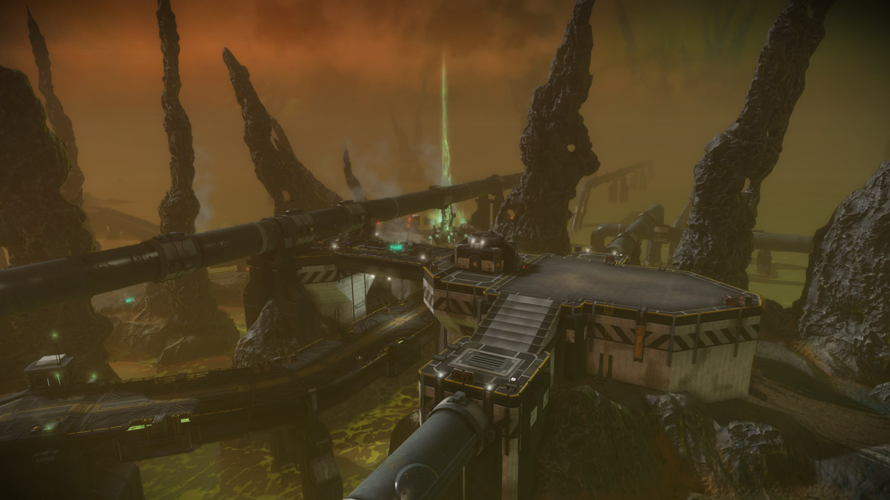 Origin is the first map we developed in the new swamp-themed Cypress environment, released in August 2012 with Starhawk 1.03. Where Starhawk's original levels focused on rift mining and the conflict between Rifter and Outcast, the Cypress theme centers on abandoned and overgrown facilities where research teams first discovered the potential of harnessing rift energy.
