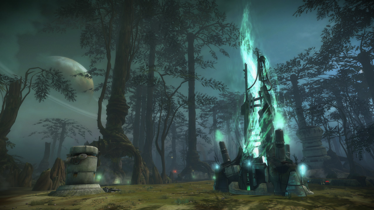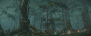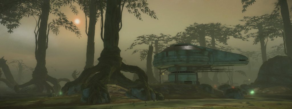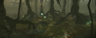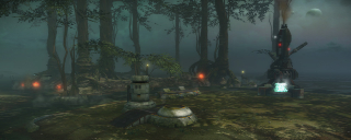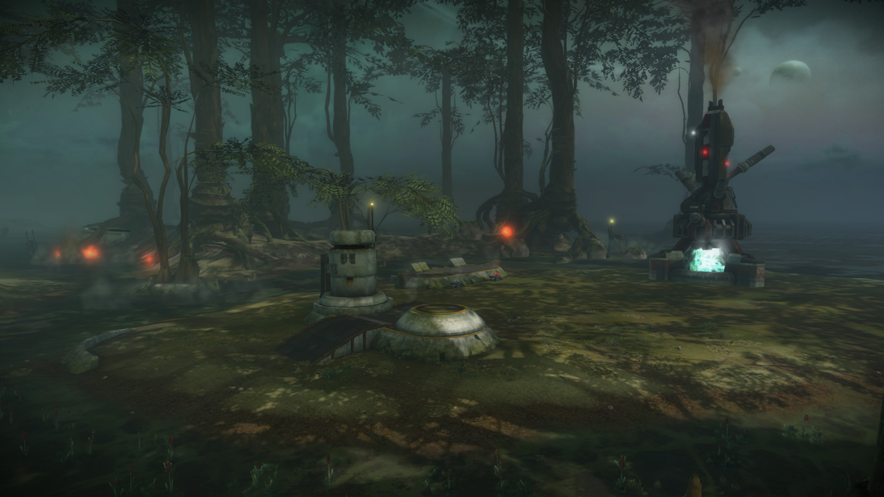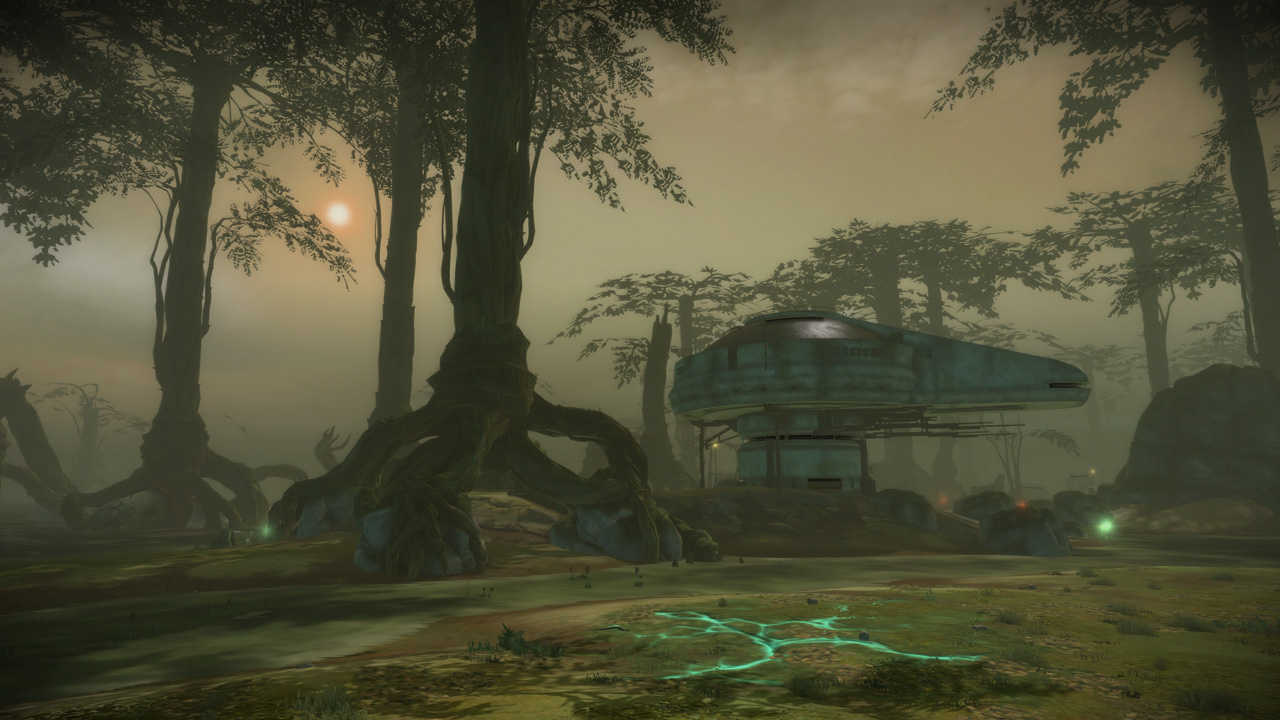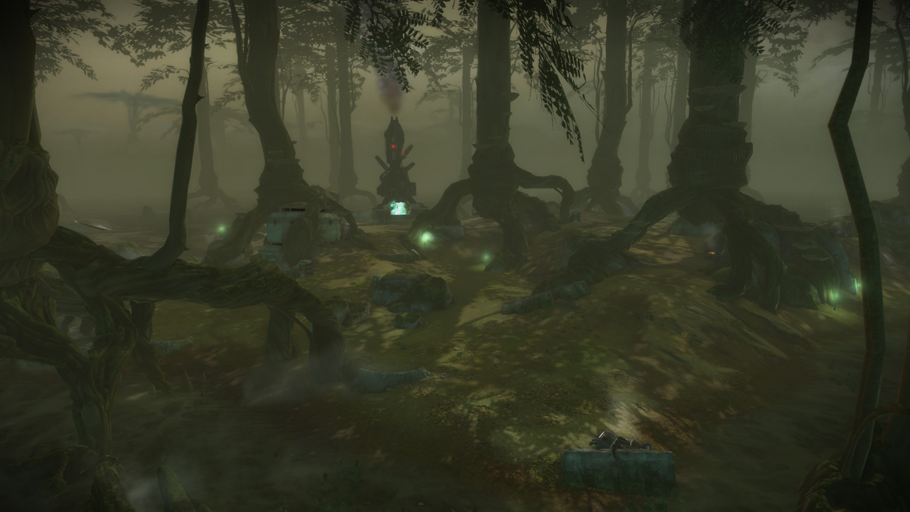 Glade reprises the Cypress theme in "extra-small" form. The layout is extremely simple, with bases arranged on a back ridge ramping down to a low-lying midground cluttered with tree roots and low cover. Glade steals the mantle of fastest Starhawk level from Outlands and also served as the most frequent proving ground of the Grizzly Rig DLC vehicle during its development.