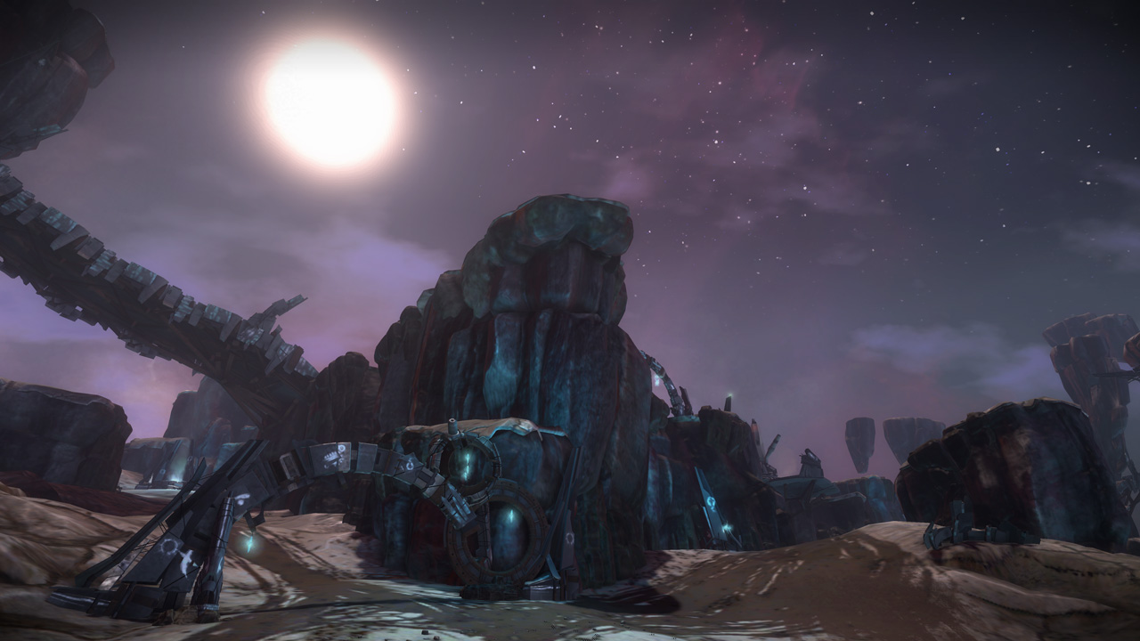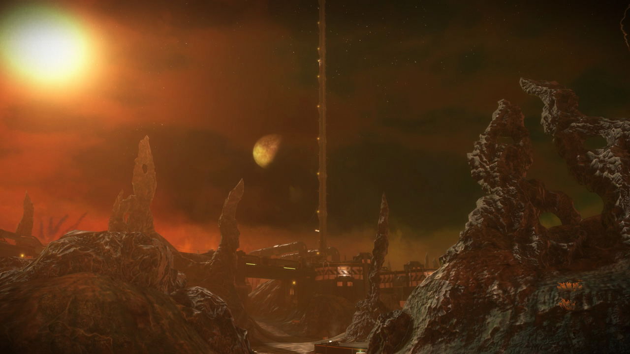 The eclipse sky featured in this level was originally developed for Basin, but we felt that introducing our new level in a dark and brownish lighting scheme wouldn't do us any favors, especially against darker levels like Conduit and Orbital. We swapped the two skies a couple weeks before submitting our Public Beta build, and the change ended up being permanent.