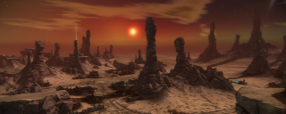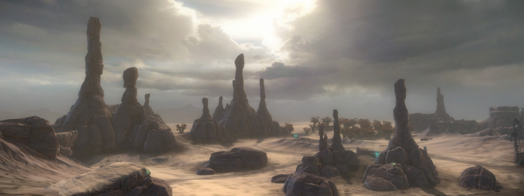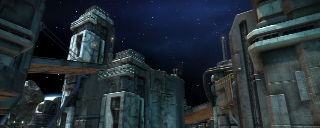 The planet Dust is central to to Starhawk's story and the most literal interpretation of the western influences on the game. This style lends itself very well to vast open terrain with sweeping routes and is the perfect location to showcase the Sidewinder. I built much of this level with massive Sidewinder and Razorback jumps in mind, such as the twin ramp plateaus framing the front entrance to each base. What the level boasts in ground excitement, though, it lacks in flight - the massive hoodoo structures provide limited flight cover, but overall this layout leaves Hawks massively exposed and vulnerable to ground fire and other dogfighters.