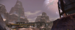 Fracture is the larger of the two Sever levels in Starhawk, and the most massive level in the game. Perhaps too massive, in fact; while the raw terrain size isn't much larger than Basin, the effective playable space is much larger, then spread further apart by bridges. This results in very low player density on all but the most packed servers.