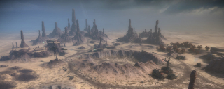 Basin is a sprawling 32-player level on the barren world of Dust and the largest pure terrestrial level featured in Starhawk. Players got their first glimpse of the level when Starhawk's Public Beta launched in January 2012. Additionally, this level served as the first introduction to the Sidewinder Jet Bike and Ox Heavy Tank vehicles.